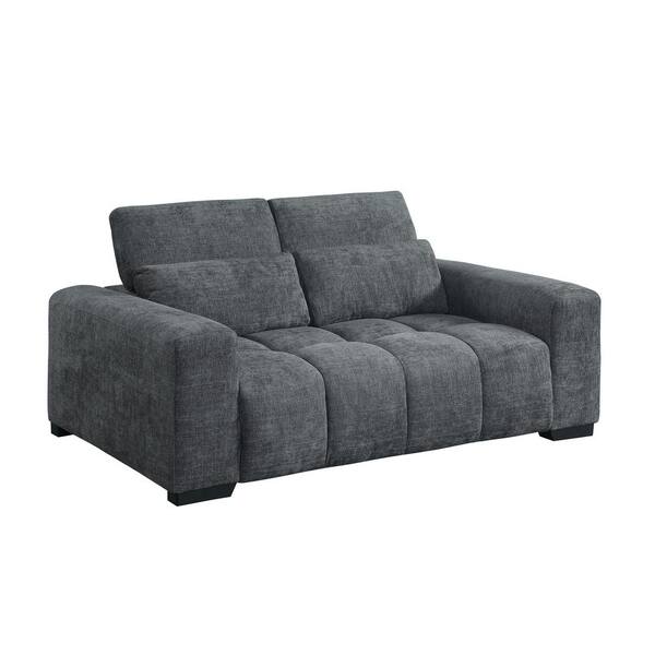 Lena 46 in W. Dark Grey Color Chenille Fabric 2 Seats Loveseat