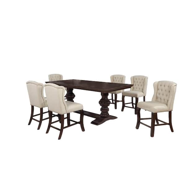 Luisa 7-Piece Rectangular Wood Cappuccino Dining Table Set Beige Linen Fabric Chairs