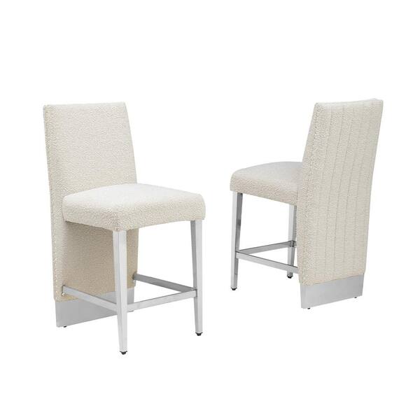 Melany 30 in. Cream Color High Back Metal Frame Iron Legs Bar Stool with Boucle Fabric Side Chair (Set of 2)