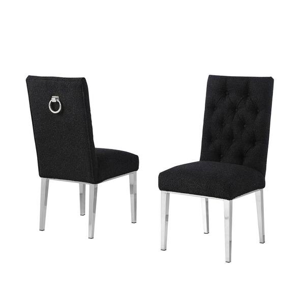 Melina Black Boucle Fabric Side Chair Set of 2 with Chrome Plated Legs