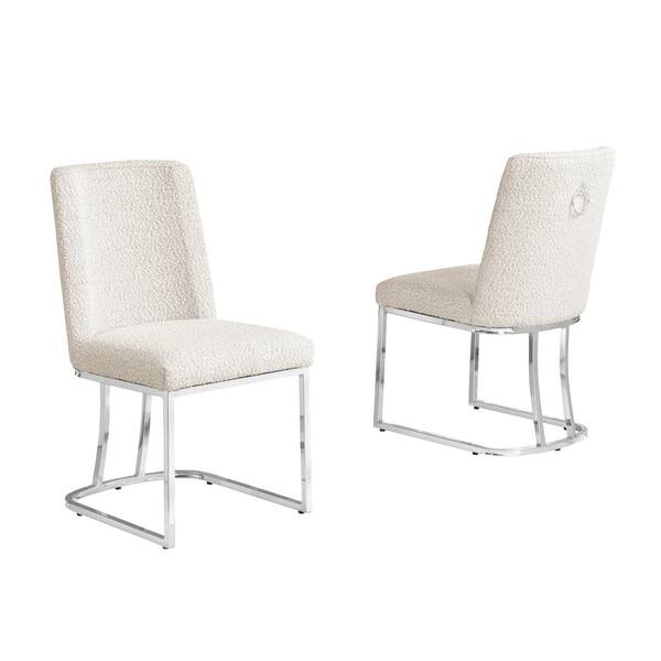 Millie Cream Boucle Fabric Side Chair Set of 2 with Chrome Plated Legs