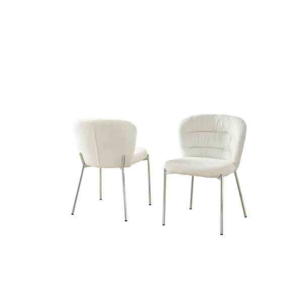 Orion Cream Fluffy Fabric Side Chair (Set of 2) with Chrome Plated Legs