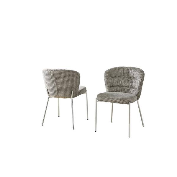 Orion Grey Fluffy Fabric Side Chair (Set of 2) with Chrome Plated Legs