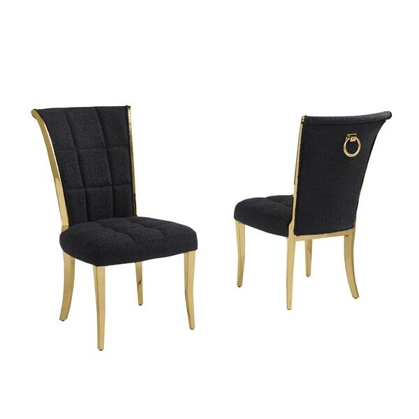 Raina Black Boucle Fabric Side Chair (Set of 2) with Gold Legs