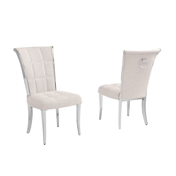 Raina Cream Boucle Fabric Side Chair (Set of 2) with Silver Legs