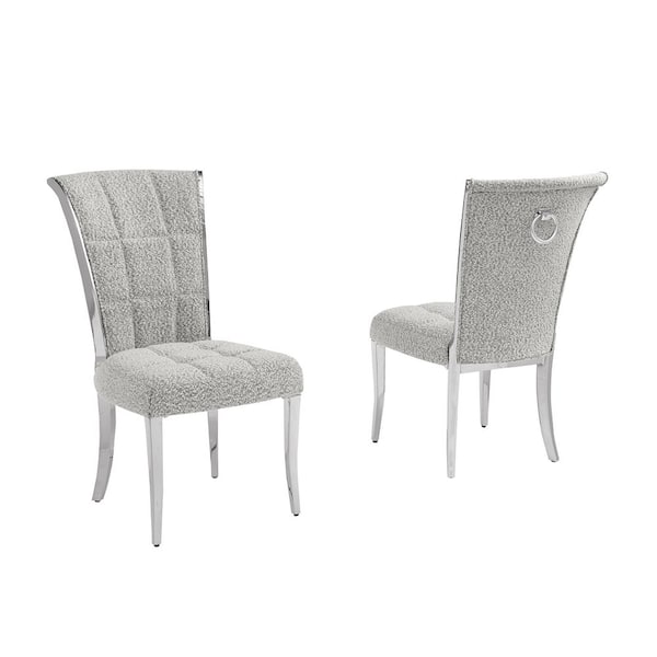 Raina Rich Grey Boucle Fabric Side Chair (Set of 2) with Silver Legs