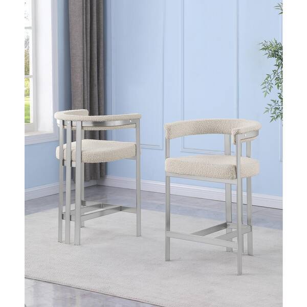 Reba 26 in. Cream Color Low Back Metal Frame Matte Brushed Chrome Base Counter Stool With Boucle Fabric Set of 2