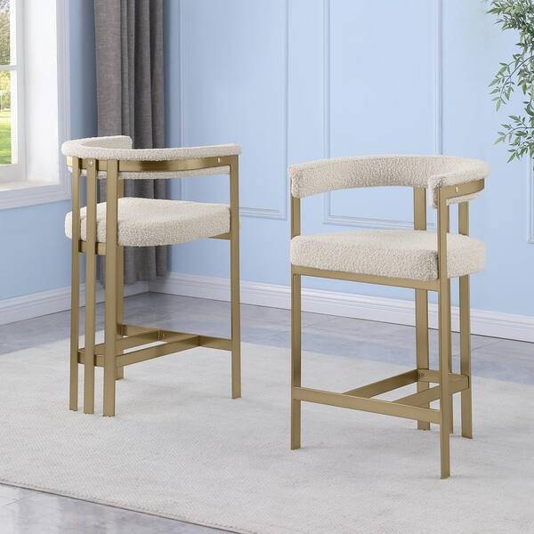 Reba 26 in. Cream Color Low Back Metal Frame Matte Brushed Gold Chrome Base Counter Stool With Boucle Fabric Set of 2
