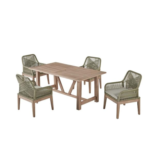 Richard Light Oak 5-Piece Acacia Wood Rectangle Standard Height Outdoor Dining Set with 4 Light Oak with Cushions Chairs