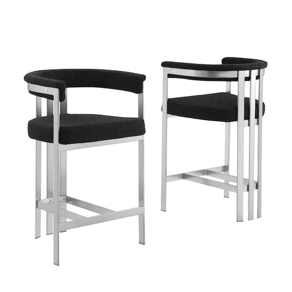 Riley 39 in. H Black Color Low Back Metal Frame Matte Brushed Chrome Base Bar Stool with Boucle Fabric (Set of 1)