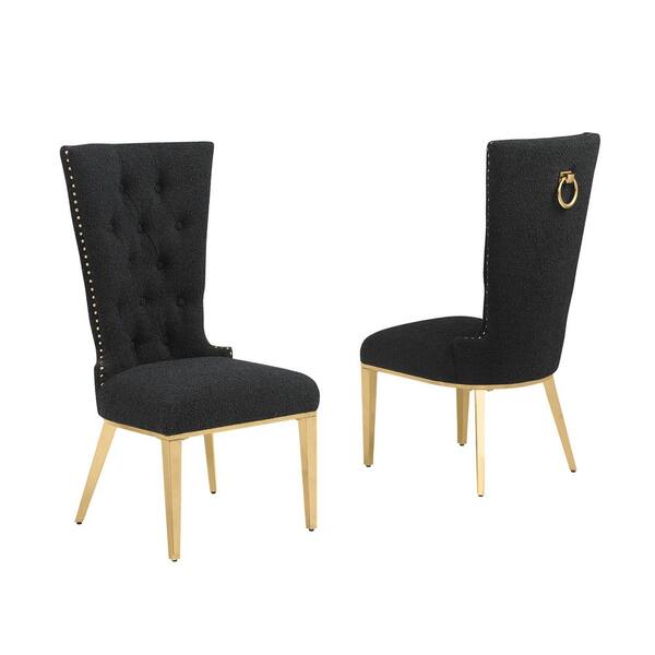 Shirley Black Boucle Fabric Side Chair Set of 2 with Gold Stainless Steel Legs