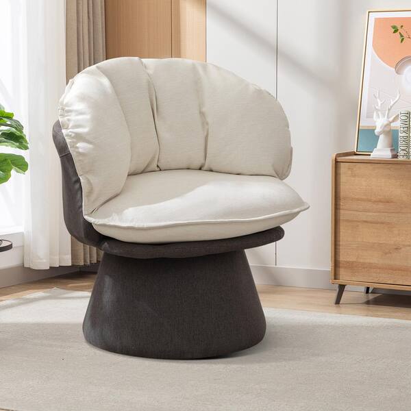 31 in. Wide White Fabric 360° Swivel Barrel Chair with Ergonomic Design Armchair with Removable Padding