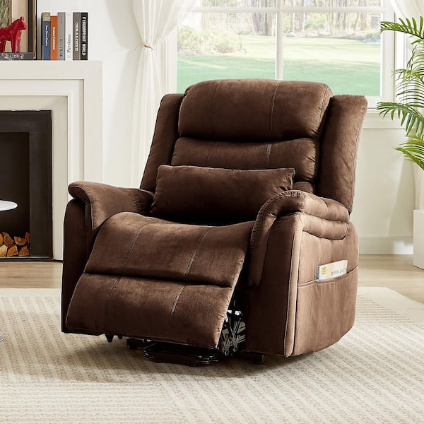 37 in. W Brown Microfiber Power Lift Recliner Chair with 8-Point Massage, Heating, Storage Pockets, and Removable Pillow