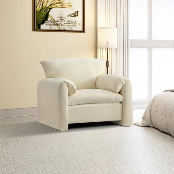 38.5 in. Wide Beige Chenille Armchair with Padded Armrest Reading Accent Chair with Tufted Cushion