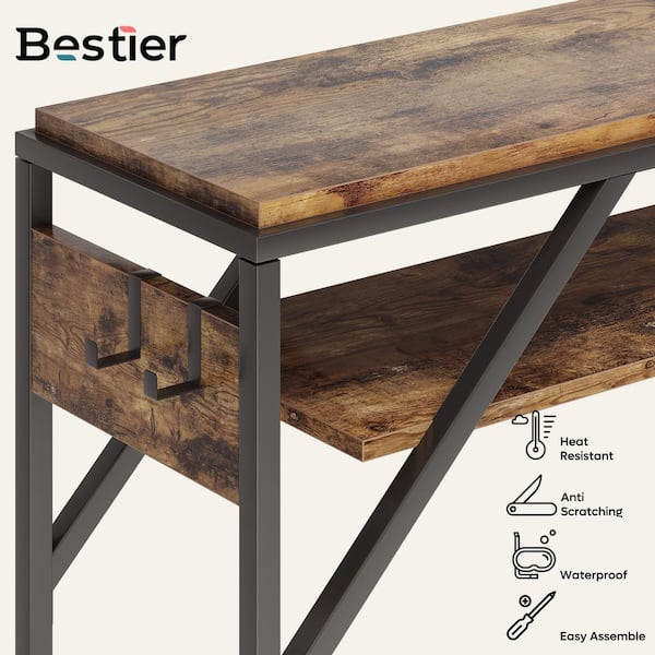 39.37 in. Rustic Brown Sleek and Minimalist Wood Console Table Modern Sofa Side Decor with Hook