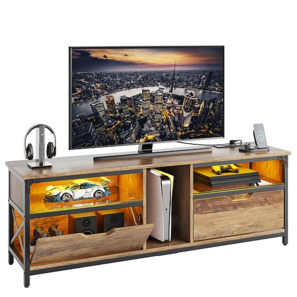 63 in. Modern TV Stand with Charging Station & RGB LED Lights for TVs up to 75", Weathered Rustic Oak