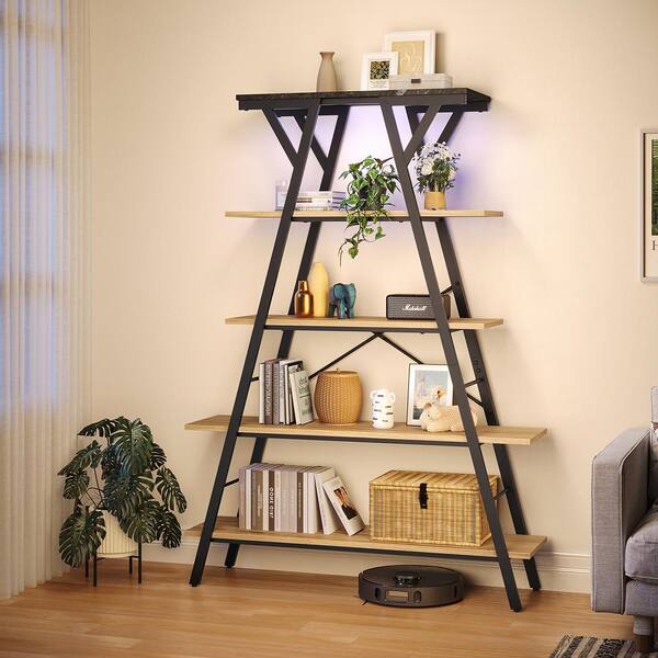 65.7 in. Tall Natural Particle Board Modern 5-Shelf Bookcase with LED Light