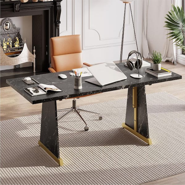 70in. Rectangular Rustic Brown Computer Desk with Metal Legs, Wooden Study Writing Table for Home Office.