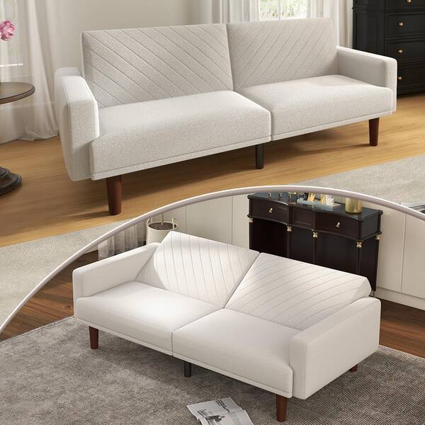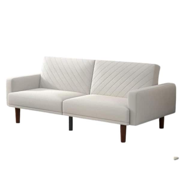 75.6 in. Wide Beige Twin Size Square Arm Fabric Modern Convertible Straight Sofa Bed with Solid Wood Leg