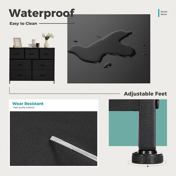 Black 7 Drawer 39.3 W in. Fabric Storage Tower Dresser Wooden Top without Mirror for Kid Room, Closet, Entryway, Nursery