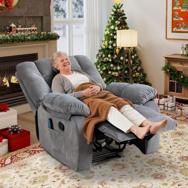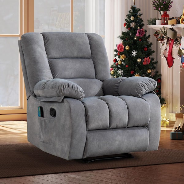 Gray Overstuffed Fabric Recliner Chairs with 8-Point Vibration Massage Manual Pull Recliner with Time Setting