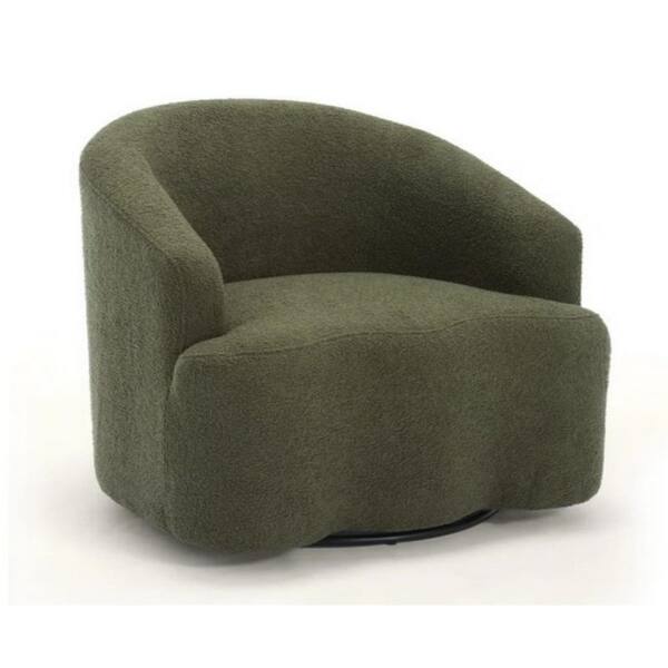 Green Metal Faux Upholstered Swivel Armchair with 360° Rotation
