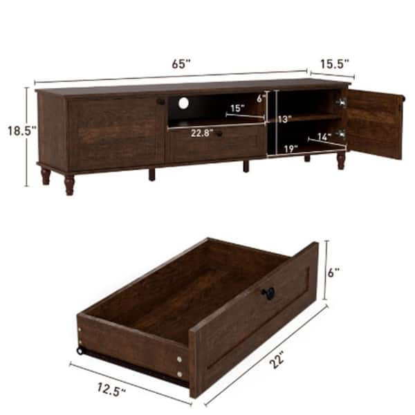 Mid-Century Dark Walnut TV Stand Fits Up to 70 in. TVs with 1 Drawer, 2 Doors and Solid Wood Legs