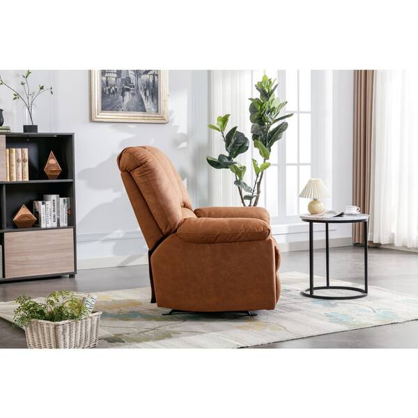 Recliner Brown Faux Leather with Adjustable Positions& Footrest-Comfort Sofa Recliner with Side Storage