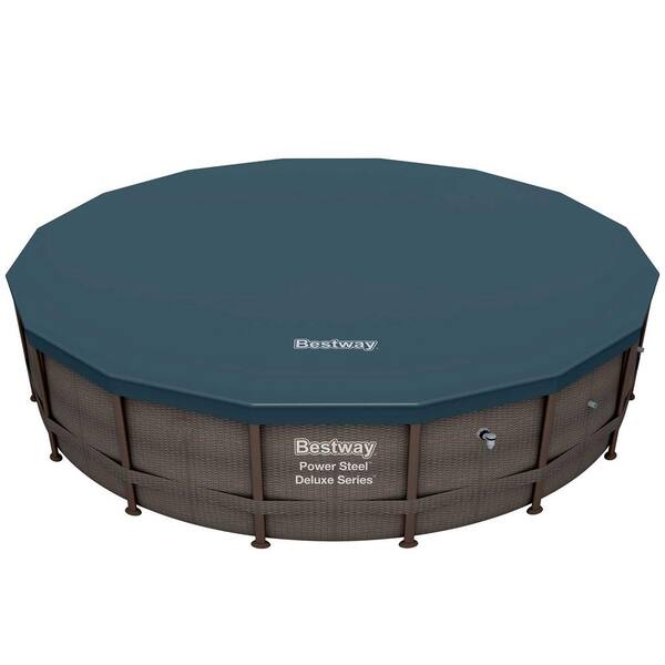 Dark Wicker 16 ft. Round Steel Frame Above Ground Hard Side 4 ft. Deep Pool Set with Taylor Water Test Kit