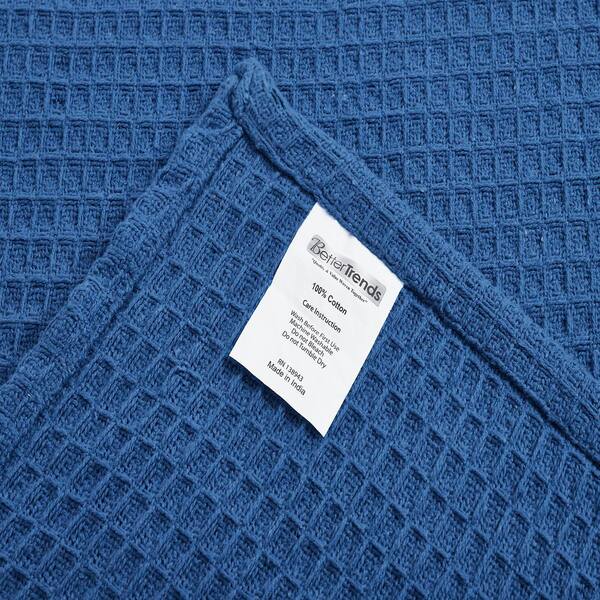 Janiya Waffle Twin Size 100% Cotton Blanket in Navy