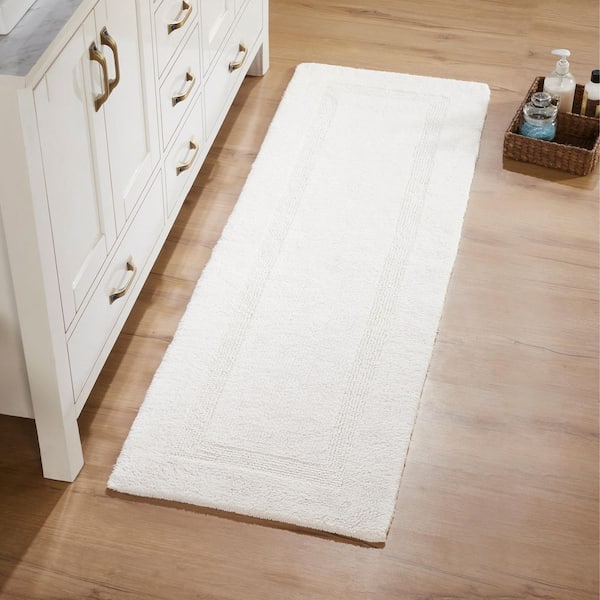 Lux Collection Ivory 20 in. x 60 in. 100% Cotton Reversible Race Track Pattern Bath Rug