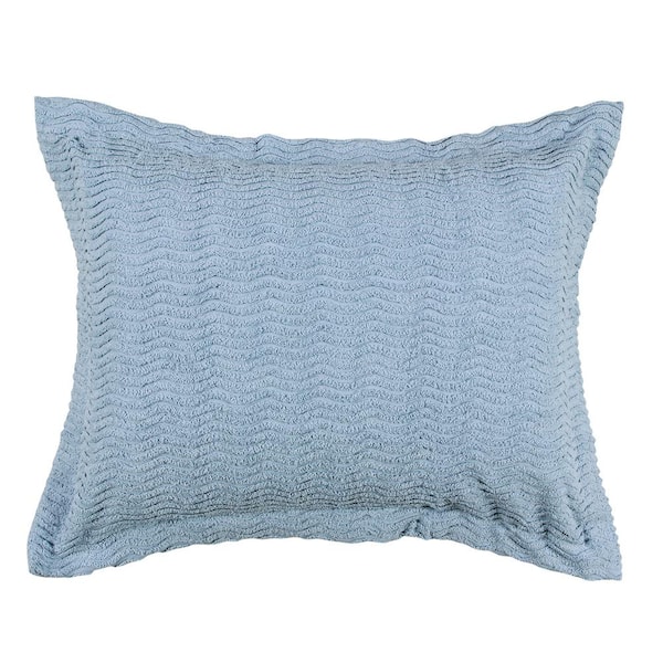 Natick Collection in Wavy Channel Stripes Design Blue Standard 100% Cotton Tufted Chenille Sham