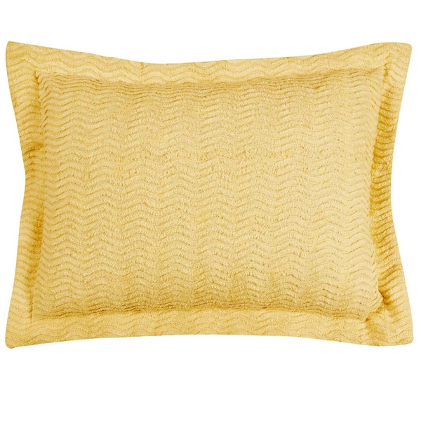 Natick Collection in Wavy Channel Stripes Design Yellow Standard 100% Cotton Tufted Chenille Sham