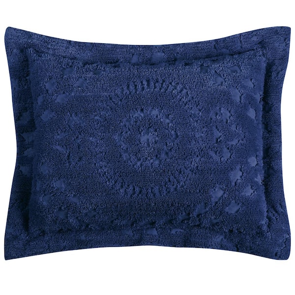 Rio Collection Floral Design Navy Standard 100% Cotton Tufted Chenille Sham