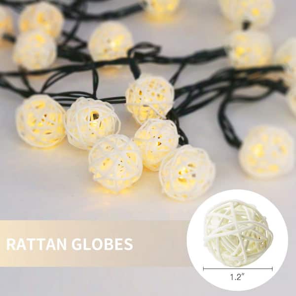 15 ft. 30 LED Warm White Globe Rattan Ball String Lights Solar Rattan Ball Fairy String Light
