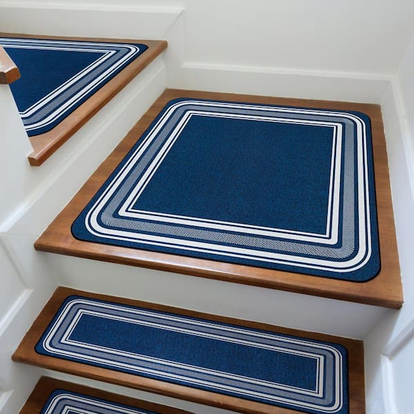 31 X 31 Navy Carmel Bordered Non-Slip Indoor Rubber Back Stair Tread Cover (Landing Mat)