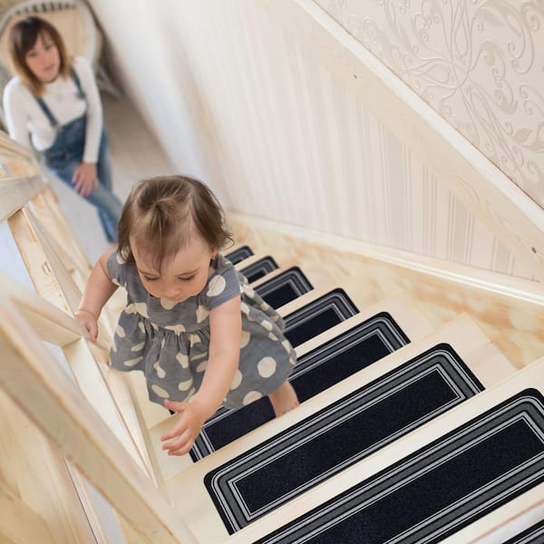 8.5 X 26 Black Carmel Bordered Non-Slip Indoor Rubber Back Stair Tread Cover (Set of 15)