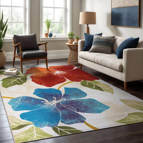 Bahamas Floral Leaf Multi 8 ft. x 10 ft. Non-Slip Rubber Back Indoor Area Rug