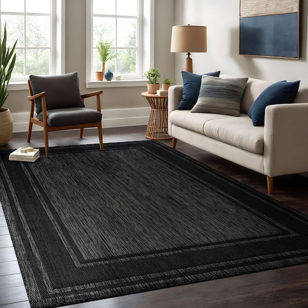 Essence Black/Gray 5 x 7 ft. Bordered Easy to Clean Indoor Outdoor Area Rug