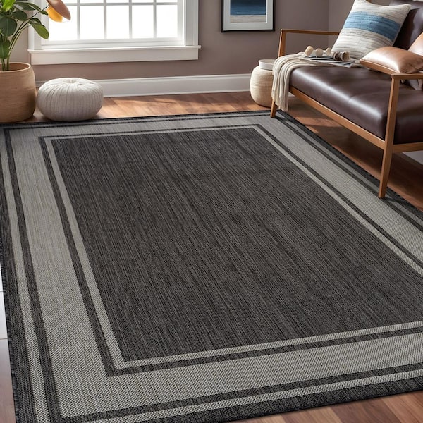 • Beautiful bordered DarkGrey/Grey indoor and outdoor area rug
