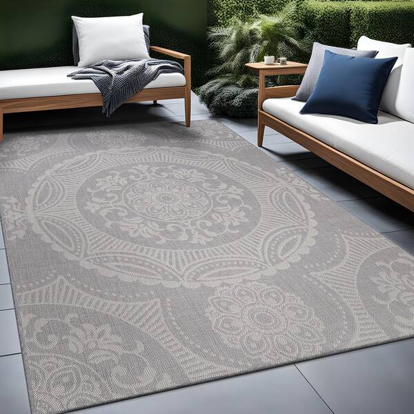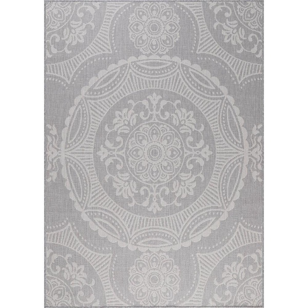 Waikiki Grey/White 4 ft. x 6 ft. Medallion Indoor/Outdoor Area Rug