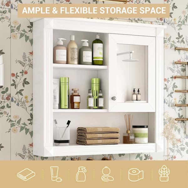 White 32 in. W x 28.7 in. H Rectangular Wall Mounted Medicine Cabinet with Mirror Door and 4 Shelves