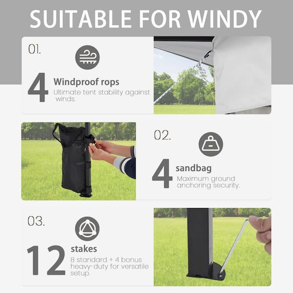 11 ft. x 11 ft. Light Gray Pop-Up Gazebo Tent with Mosquito Netting