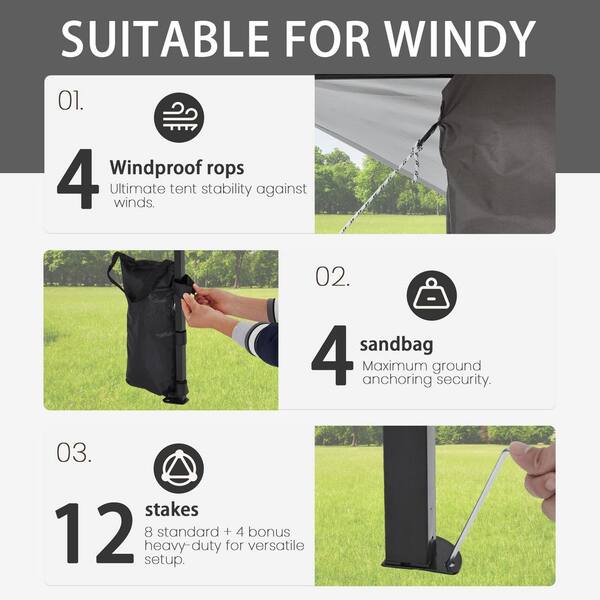 13 ft. x 13 ft. Dark Gray Pop-Up Gazebo Tent with Mosquito Netting