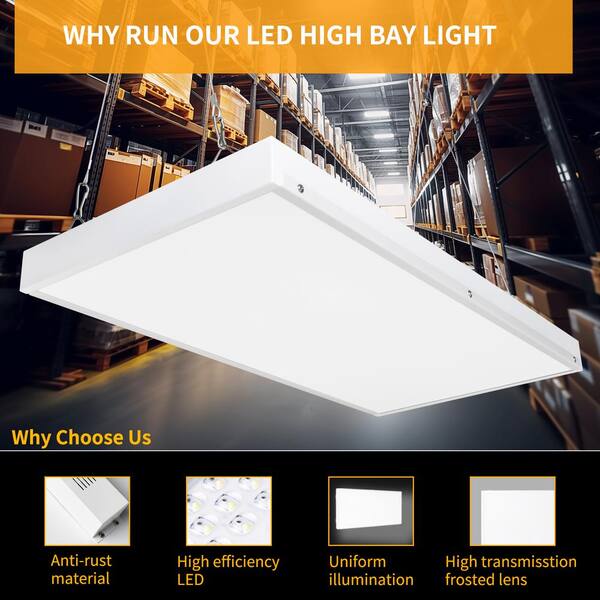 2ft 400-Watt-Equivalent Integrated LED White High Bay Light 5000K Industrial Workshop Linear Hanging Light (2 Pack)