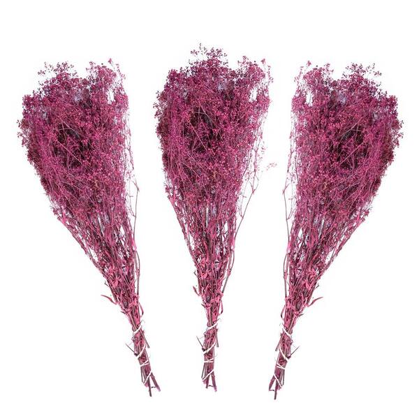 23 in. Purple Violet Dried Natural Baby's Breath Hot (3-Pack)
