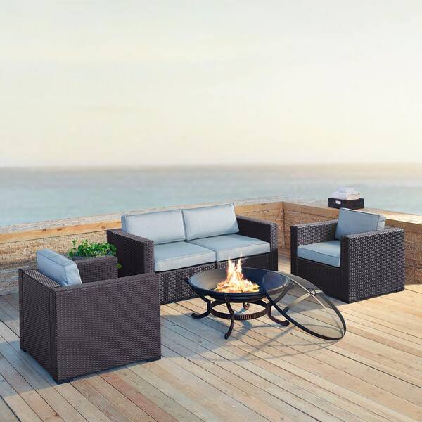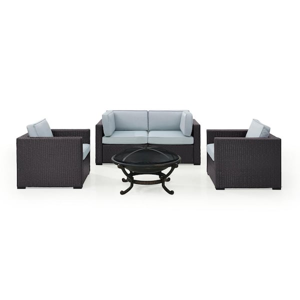 Biscayne 5-Piece Wicker Outdoor Sectional Set with Mist Cushions