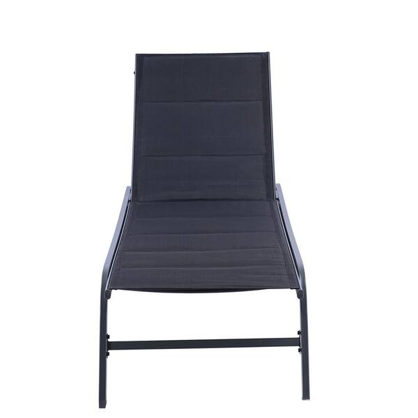 Black 1-Piece Metal Outdoor Chaise Lounge Patio Lounge Chair Adjustable Metal Recliner with Wheels and Textilene Seat