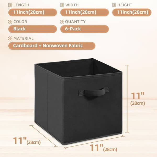 Black 10.5 in. x 11 in. Fabric Decorative Basket Set of 6 for Organization