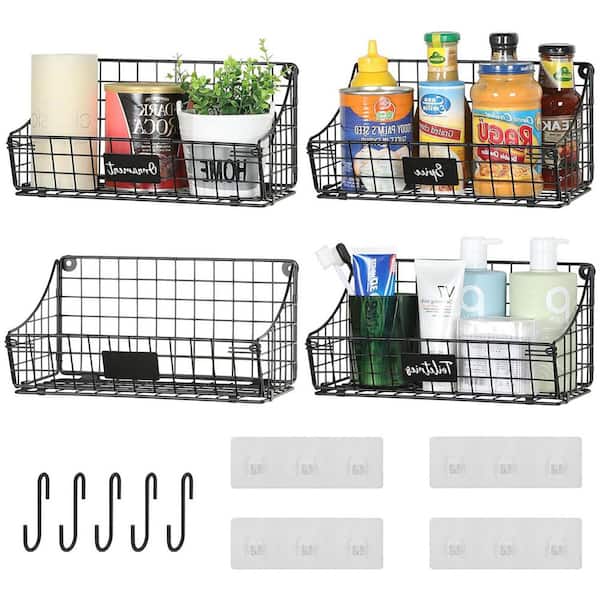 Black 11.5 in. x 6 in. Metal Decorative Basket Set of 4 with 5 S Hook and 4 Adhesive Hook